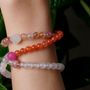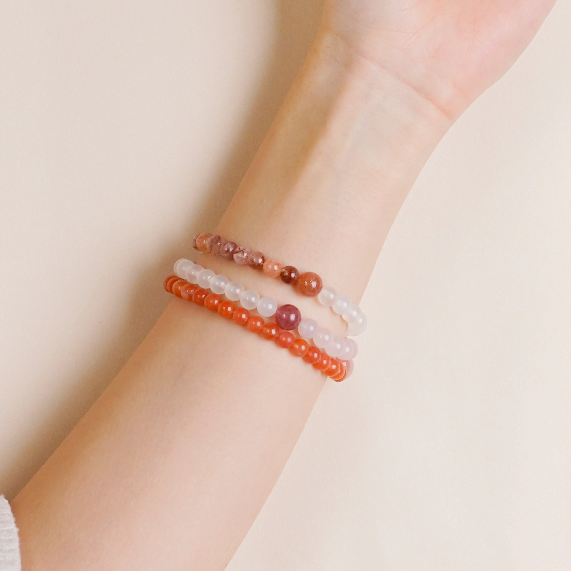 Ignite your inner fire with the Aries Crystal Bracelet, a handcrafted masterpiece designed specifically for the bold and fearless Aries spirit. This stunning piece combines the vibrant energy of Rhodochrosite with the passionate glow of Red Strawberry Quartz and the warm radiance of Sunstone. The Madagascar Rose Quartz adds a touch of love energy, while Southern Red Agate and Red Hematoid provide grounding strength. +B4:H5White Chalcedony brings balance and clarity to this powerful combination. Each crystal is carefully selected to amplify the natural leadership qualities and adventurous spirit that define Aries. Perfect for those born under the first sign of the zodiac who seek to channel their fiery passion into positive action.