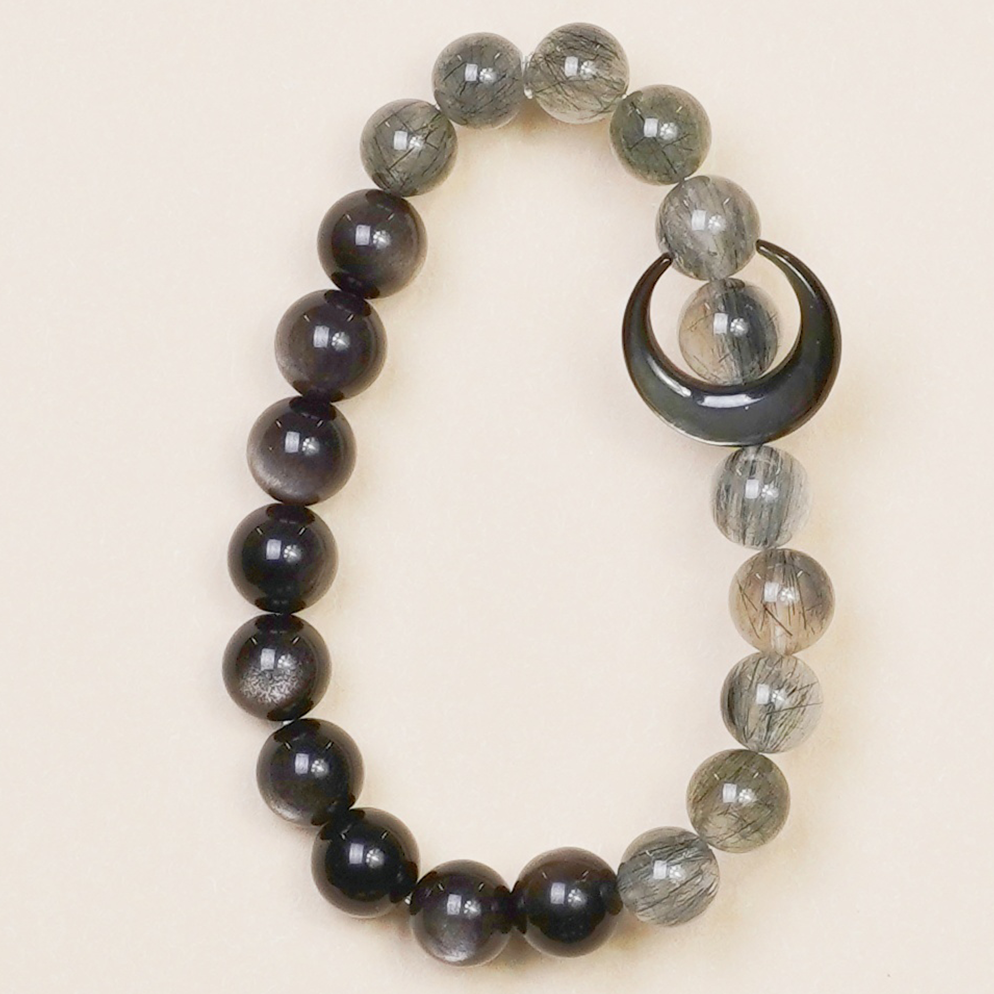Discover the tender mysteries of cosmic love with our Moonlit Night Ink Shadow Bracelet, featuring delicate silver obsidian that captures the essence of celestial romance. Like moonlight painting shadows across the night sky, this bracelet weaves together the energies of divine love and cosmic connection. Rutilated Quartz's soft hues carry the frequency of universal compassion and heart-centered consciousness, opening your being to receive love from both earthly and cosmic sources. Each bead holds the gentle power of the moon's embrace, creating a sanctuary of peace and emotional healing. Perfect for those seeking to heal their hearts, attract soulmate connections, or deepen their relationship with the divine feminine energy of the cosmos.