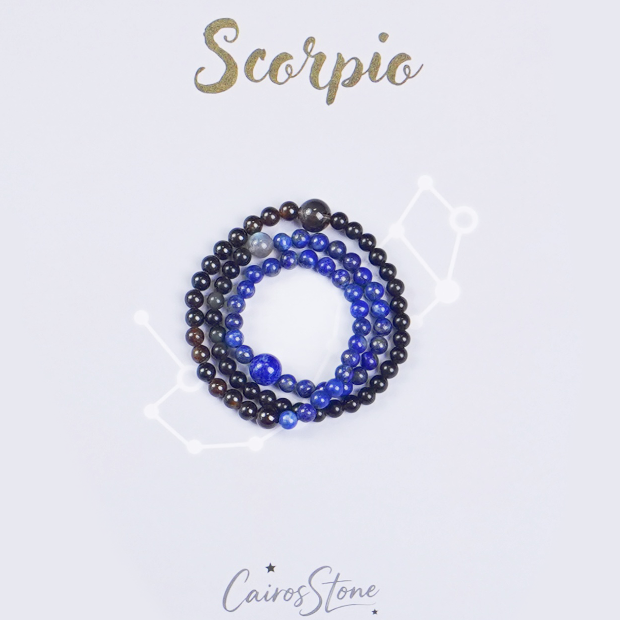 Embrace your mysterious depth with the Scorpio Crystal Bracelet, a powerfully protective collection of dark and transformative crystals designed for the intense and intuitive Scorpio spirit. This commanding piece features the deep wisdom of Lapislazuli, the mystical transformation of Labradorite, and the passionate energy of Garnet. Obsidian provides powerful protection against negativity, while Smoky Quartz grounds and stabilizes emotional energy. Each crystal resonates with Scorpio's natural ability to see beyond the surface and embrace transformation. This bracelet is perfect for those who seek to harness their inner power and navigate life's depths with confidence and intuition.