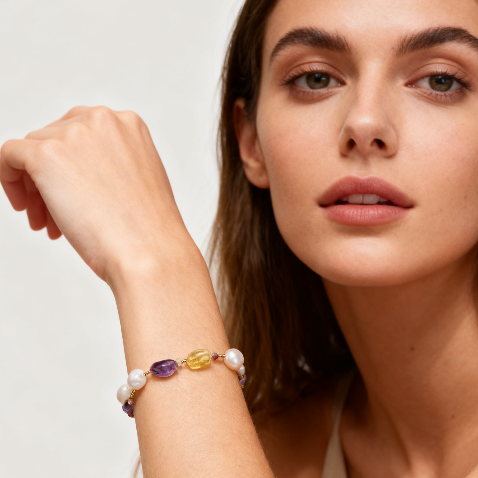 Catch falling stars with our Starfall in Baroque Bracelet, where each baroque pearl and gemstone resembles a celestial body frozen in its journey through the cosmos. This extraordinary piece combines the organic beauty of baroque pearls with the regal purple of amethyst and the golden warmth of citrine, creating a constellation of abundance and creativity on your wrist. Unlike perfectly round pearls, baroque pearls embrace their unique, irregular shapes - each one a masterpiece of nature's artistry, no two exactly alike. Like stars scattered across the night sky, these pearls catch light from unexpected angles, creating a mesmerizing play of luster and shadow. Perfect for creative souls, entrepreneurs manifesting abundance, and those who celebrate the beauty of imperfection.